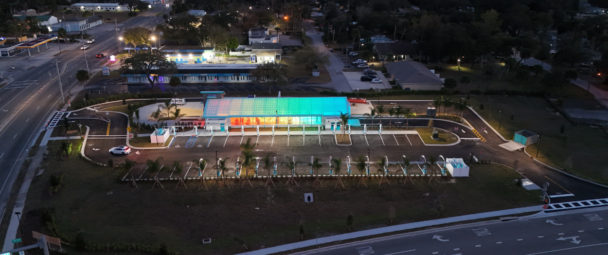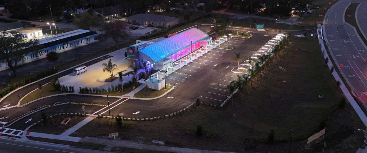 Each Hang 10 site combines operational efficiency with a distinctive brand identity, featuring vibrant façade materials, translucent roof lighting effects, vacuum parking layouts, and customer-friendly amenities such as dog wash stations. CESO’s integrated teams help standardize all elements into a scalable model, streamlining decision‑making, improving speed to market, and maintaining brand consistency.